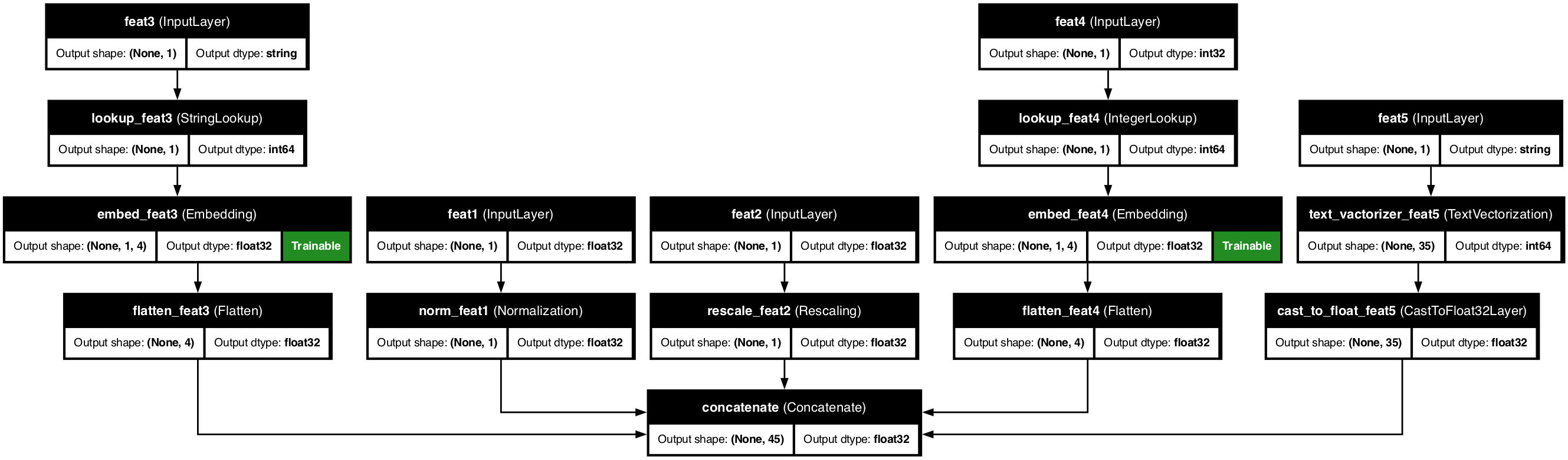 'feat5': <KerasTensor shape=(None, 1), dtype=string, sparse=None, name=feat5>